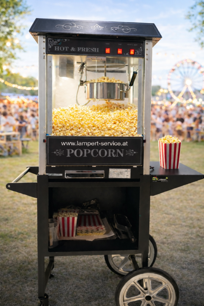 Bereitet frisches, warmes Popcorn im Handumdrehen direkt vor Ort zu und eignet sich ideal zur Verpflegung mehrerer Gäste. Sorgt zuverlässig für Partystimmung bei jeder Veranstaltung.
